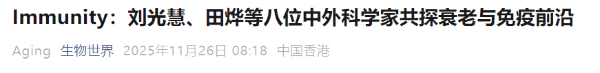 【生物世界】Immunity:刘光慧、田烨等八位中外科学家共探衰老与免疫前沿